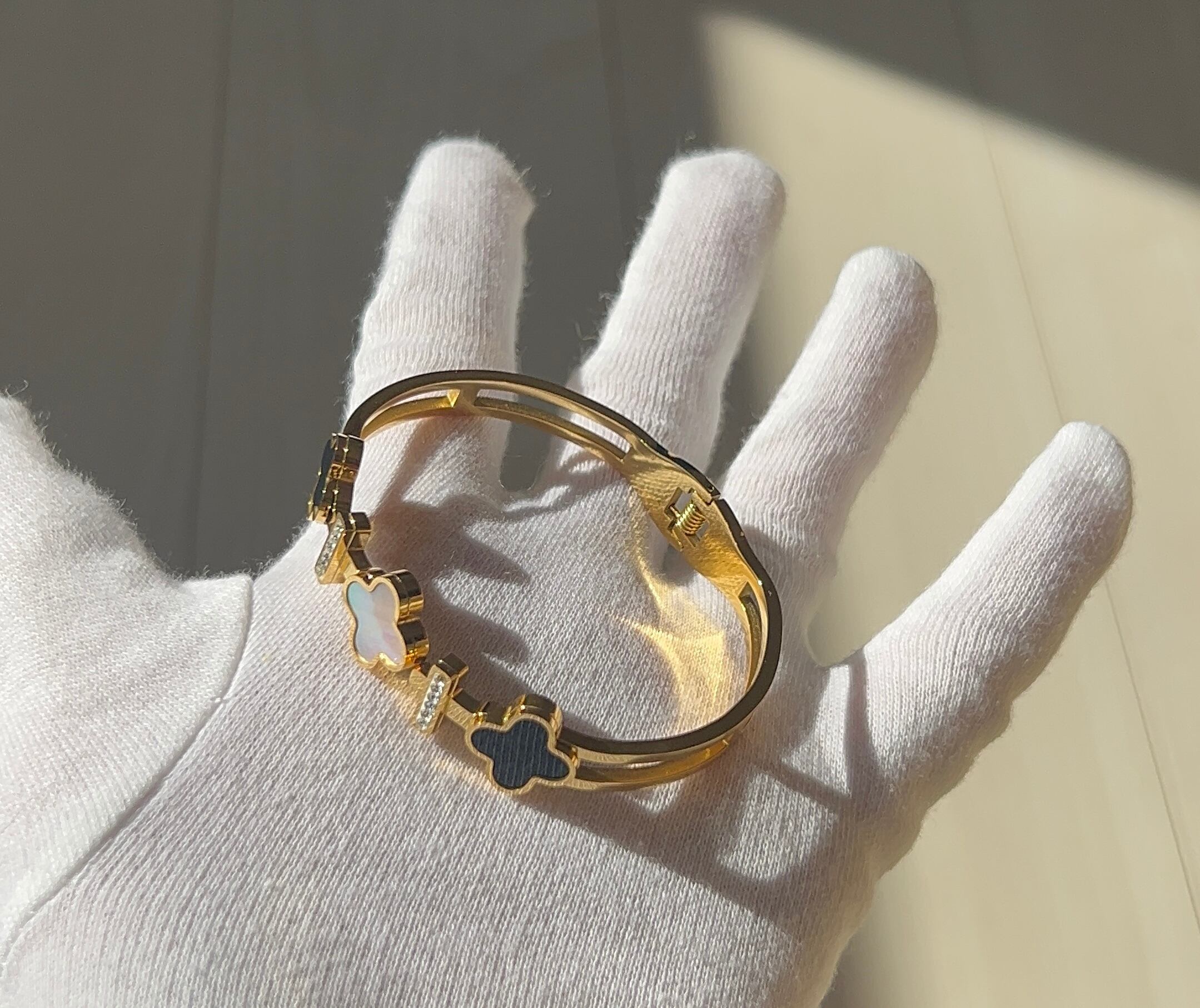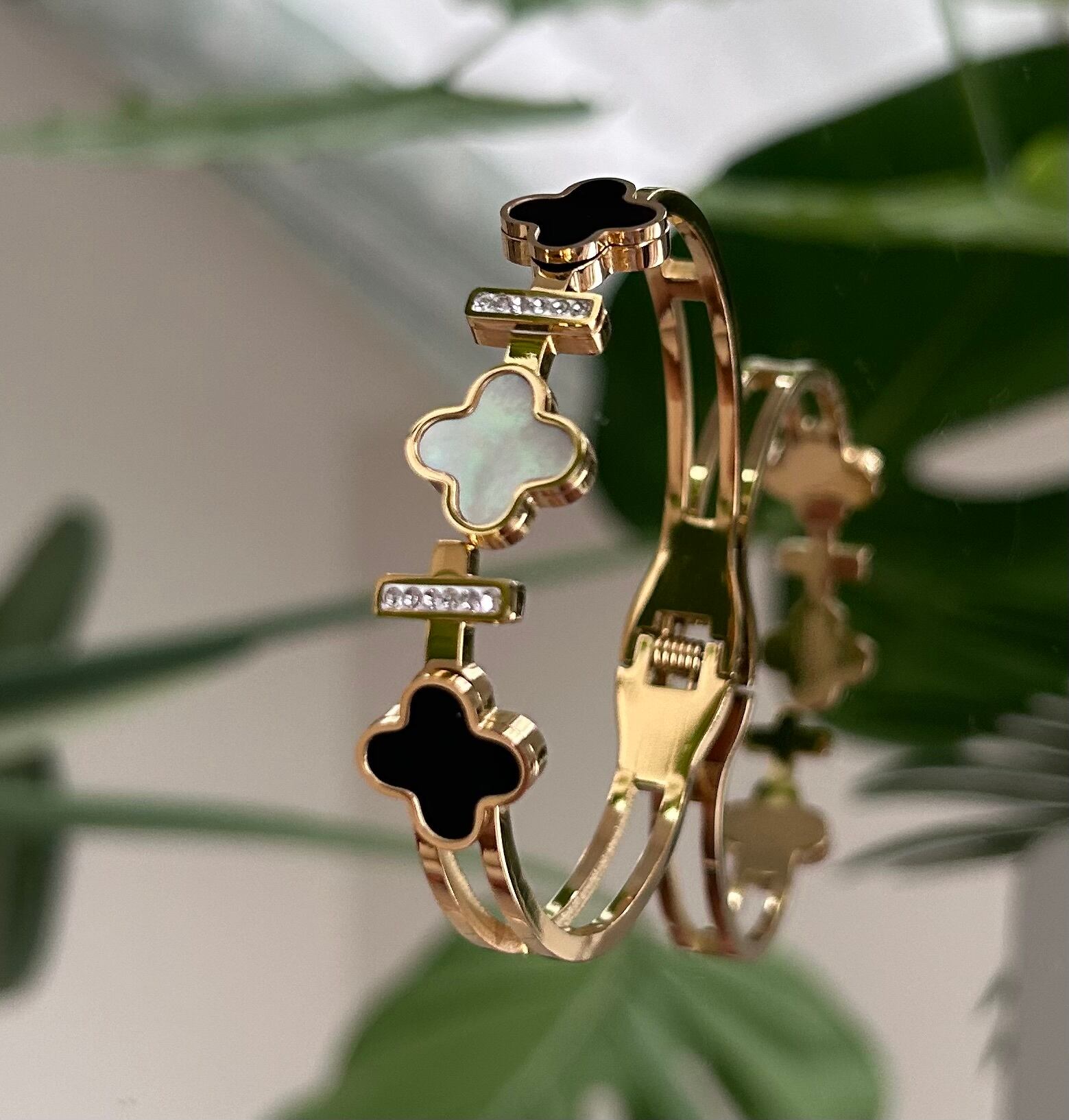 Black and White Clover Bangle 16cm